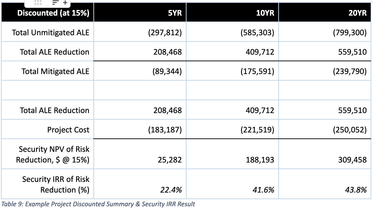 Following this methodology is tedious, even if you are familiar with both FAIR and DCF, and I would not recommend applying it broadly to every assessment and cost-benefit decision you support in your organization. Always align the level of effort in your analysis to the complexity and significance of the decision you intend to support.